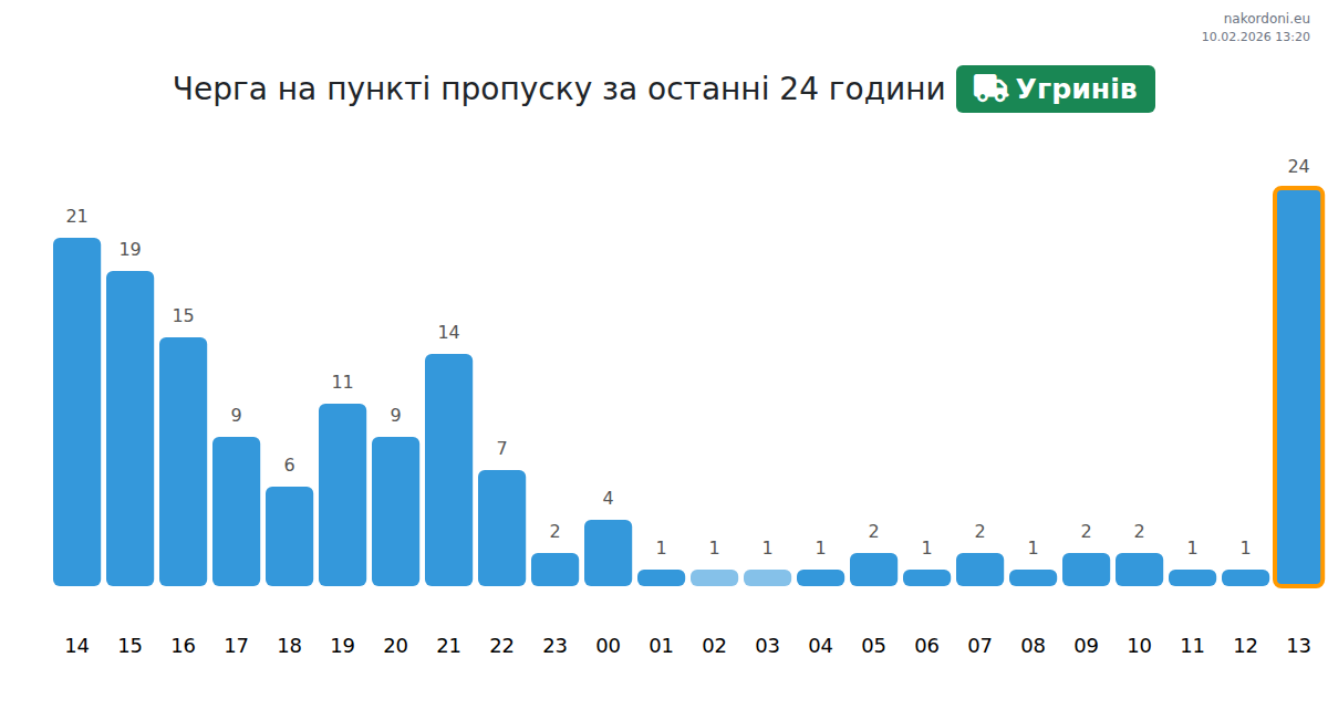 Queue at checkpoint for the last 24 hours