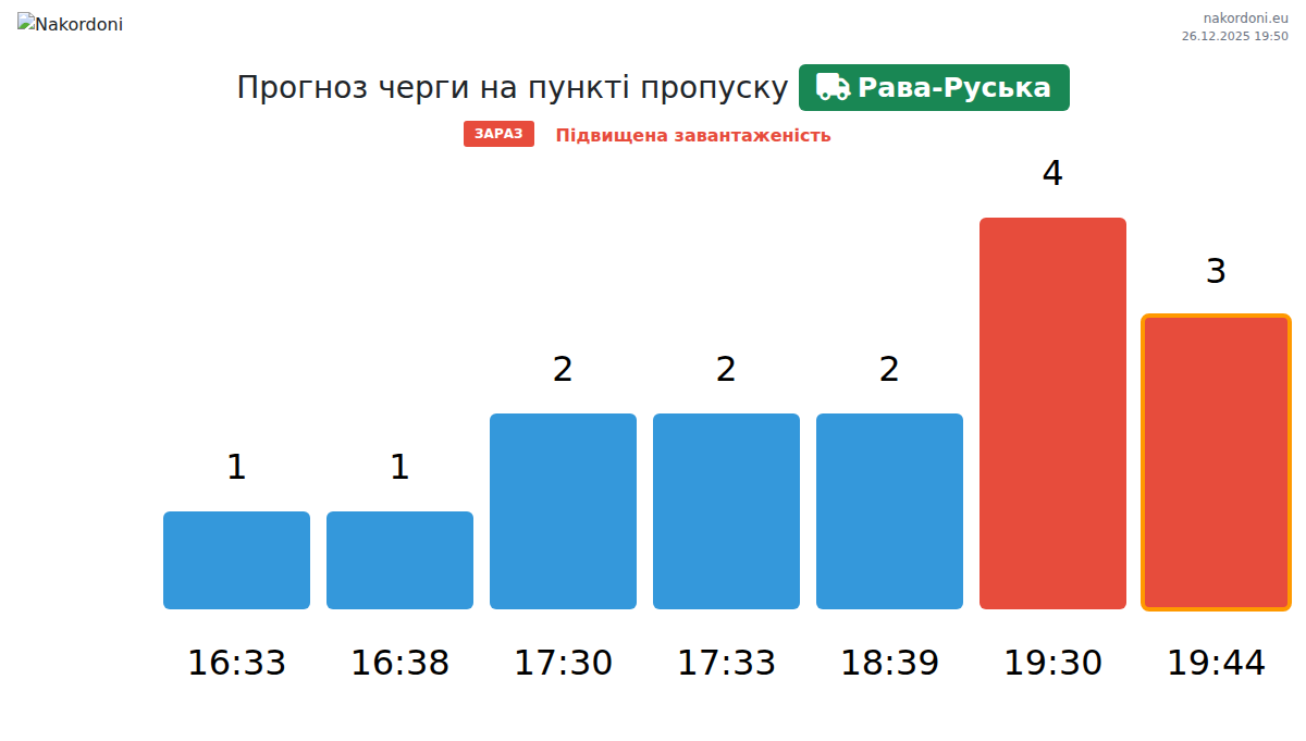 За період 25.12.2025 з 00:00 по 23:59 на кордоні на пункті пропуску Рава-Руська - вантажний транспорт були зафіксовані наступні ключові моменти:
