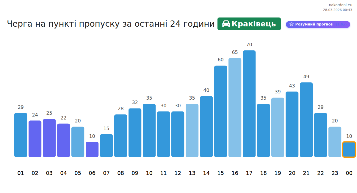 За да избегнете дълги опашки на границата на КПП Кракивець - лек автомобил, препоръчваме да планирате преминаването на границата в часовете с най-малко натоварване. Според данните от изминалия ден, най-малкият брой превозни средства е наблюдаван между 3:00 и 5:00 часа. Това е идеалното време за преминаване на границата, за да спестите време и да избегнете закъснения.