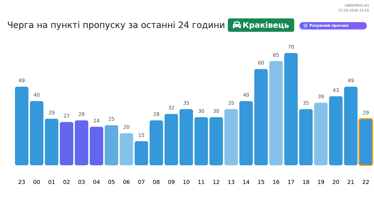 Анализ на опашката на границата на КПП Кракивець - лек автомобил за вчера