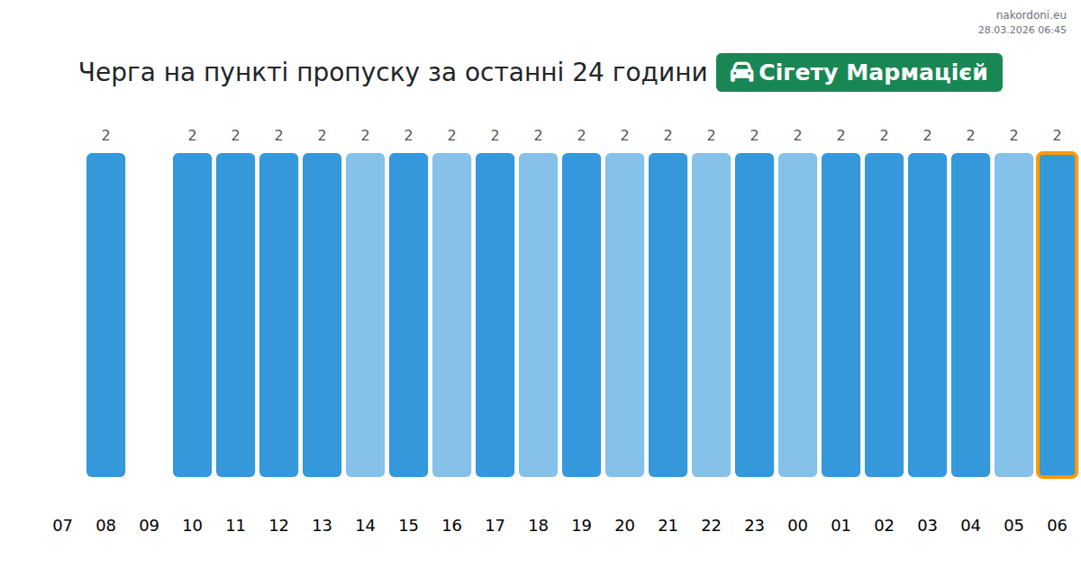 За да избегнете дълги опашки на границата на КПП Сигету Мармацией - лек автомобил, препоръчваме да планирате преминаването на границата в часовете с най-малко натоварване. Според данните от изминалия ден, най-малкият брой превозни средства е наблюдаван между 1:00 и 2:00 часа. Това е идеалното време за преминаване на границата, за да спестите време и да избегнете закъснения.