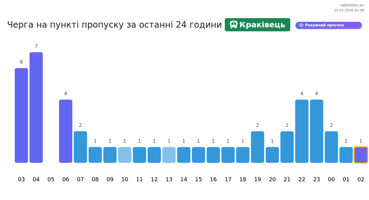 За да избегнете дълги опашки на границата на КПП Кракивець - автобус, препоръчваме да планирате преминаването на границата в часовете с най-малко натоварване. Според данните от изминалия ден, най-малкият брой превозни средства е наблюдаван между 5:00 и 8:00 часа. Това е идеалното време за преминаване на границата, за да спестите време и да избегнете закъснения.