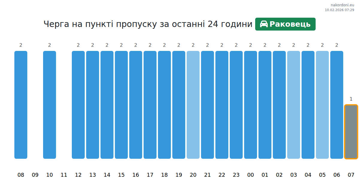 На КПП „Раковець“ за леки автомобили се очакват времена за изчакване между 15-45 минути. Избягвайте пиковите часове в 22:00, 13:00 и 19:00. Най-добрите часове за преминаване са 23:00, 00:00 и 01:00.