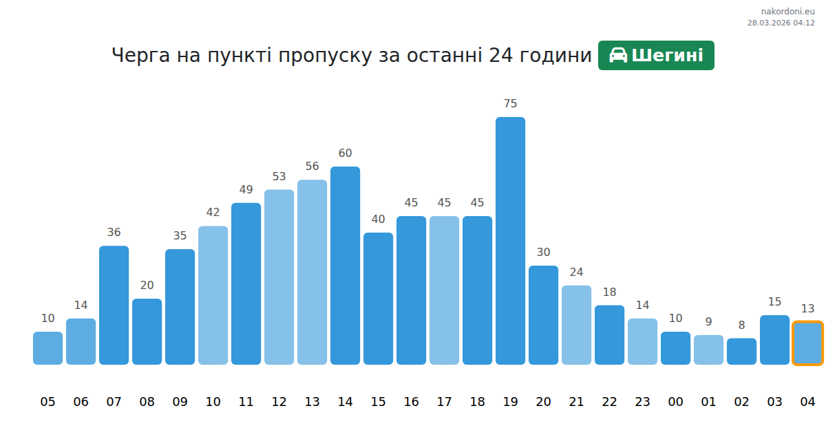 At Shehyni until end of tomorrow, expected queue is 15–153 minutes for passenger cars. Peak hours: 13:00, 14:00, 16:00. Shortest queues expected at 02:00, 03:00, 05:00. Tonight and tomorrow morning traffic will be moderate.
