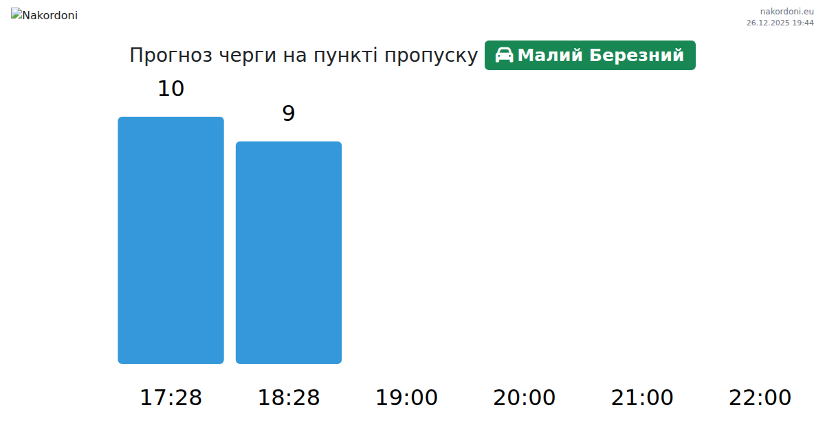 Для уникнення довгих черг на кордоні на пункті пропуску Малий Березний - легковий автомобіль, рекомендуємо планувати перетин кордону в години найменшого навантаження. Згідно з даними за минулу добу, найменша кількість автомобілів спостерігалася між 12:00 та 18:00 годинами. Це ідеальний час для перетину кордону, щоб зекономити час і уникнути затримок.