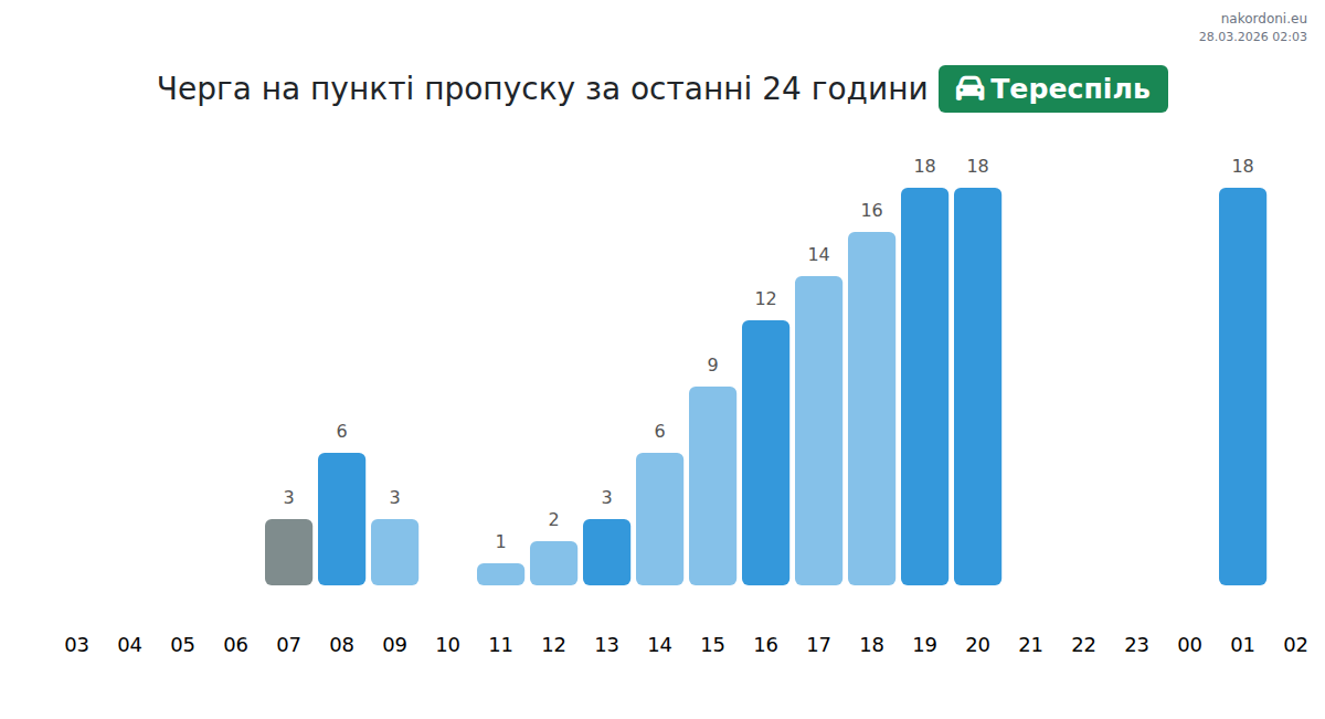 Анализ на опашката на границата на КПП Тереспиль - лек автомобил за вчера