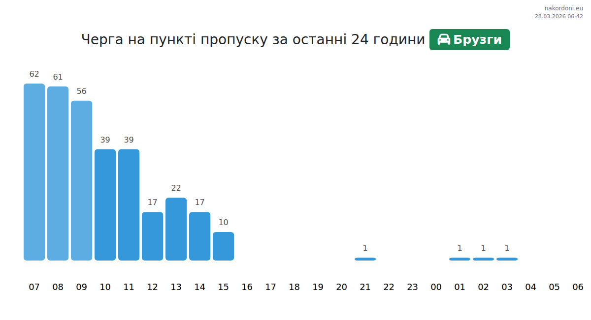 За да избегнете дълги опашки на границата на КПП Брузги - лек автомобил, препоръчваме да планирате преминаването на границата в часовете с най-малко натоварване. Според данните от изминалия ден, най-малкият брой превозни средства е наблюдаван между :00 и 1:00 часа. Това е идеалното време за преминаване на границата, за да спестите време и да избегнете закъснения.