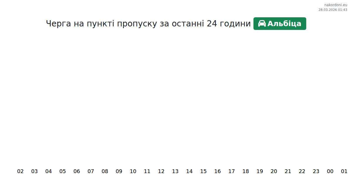 At Albița until end of tomorrow, expected queue is 15–125 minutes for passenger cars. Peak hours: 20:00, 06:00, 18:00. Shortest queues expected at 21:00, 22:00, 23:00. Tonight and tomorrow morning traffic will be moderate.