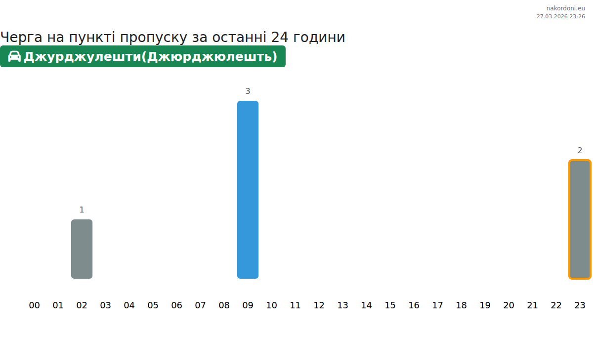 За периода 26.03.2026 от 00:00 до 23:59 на границата на КПП Джурджулешти(Джюрджюлешть) - лек автомобил бяха записани следните ключови моменти: