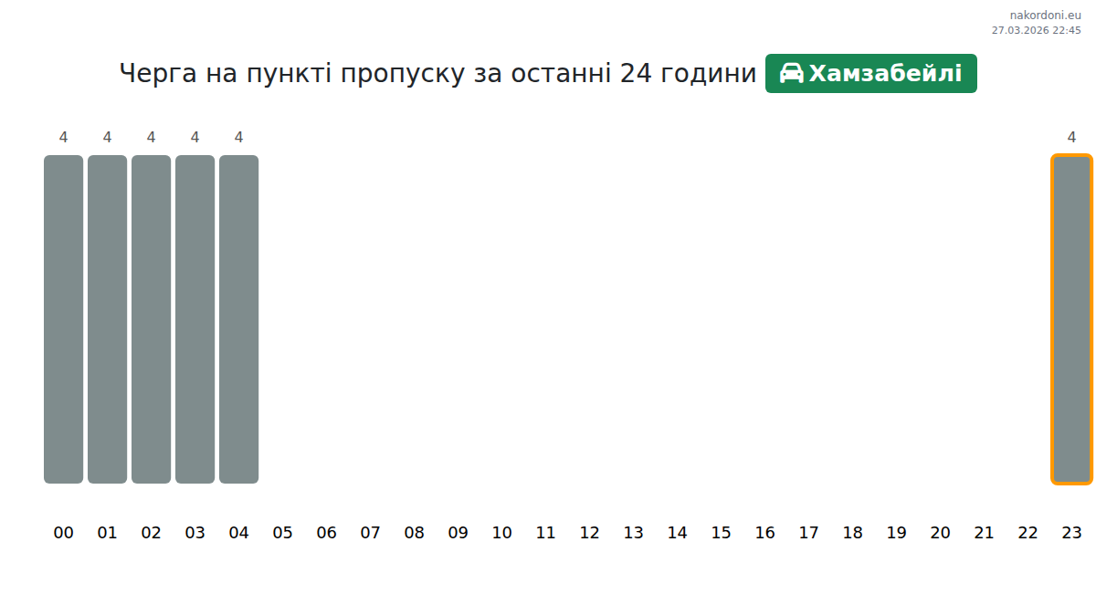 За периода 26.03.2026 от 00:00 до 23:59 на границата на КПП Хамзабейли - лек автомобил бяха записани следните ключови моменти: