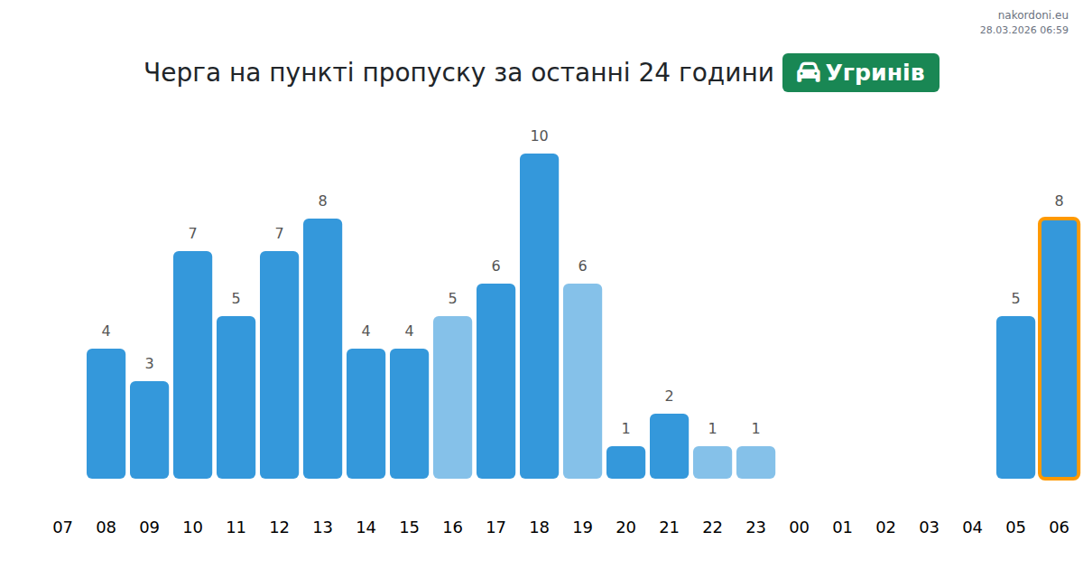 За да избегнете дълги опашки на границата на КПП Угринив - лек автомобил, препоръчваме да планирате преминаването на границата в часовете с най-малко натоварване. Според данните от изминалия ден, най-малкият брой превозни средства е наблюдаван между 5:00 и 20:00 часа. Това е идеалното време за преминаване на границата, за да спестите време и да избегнете закъснения.