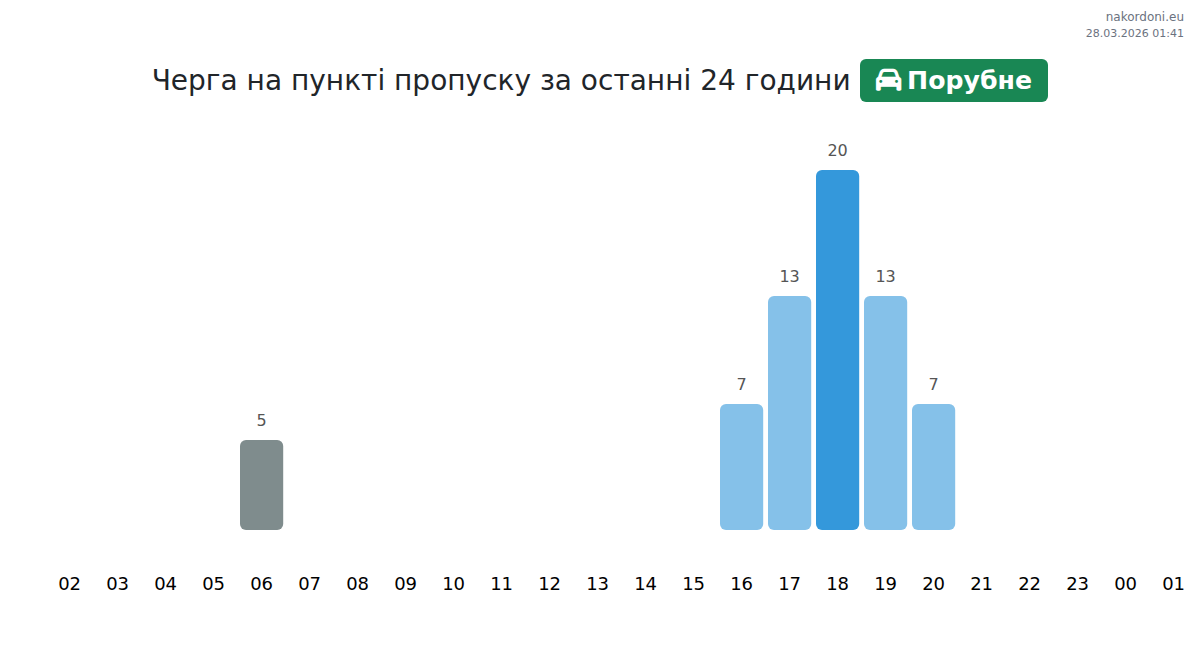Анализ на опашката на границата на КПП Порубне - лек автомобил за вчера