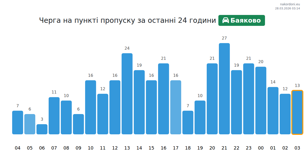 За да избегнете дълги опашки на границата на КПП Баяково - лек автомобил, препоръчваме да планирате преминаването на границата в часовете с най-малко натоварване. Според данните от изминалия ден, най-малкият брой превозни средства е наблюдаван между 5:00 и 8:00 часа. Това е идеалното време за преминаване на границата, за да спестите време и да избегнете закъснения.
