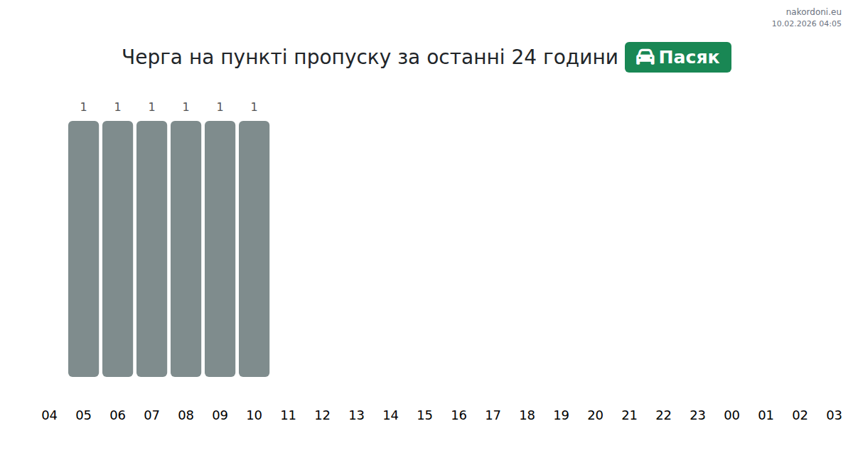 На ГКПП Пасяк времето за изчакване за леки автомобили е 71-71 минути. Избягвайте пиковите часове от 21:00 до 23:00. Най-доброто време за преминаване е 00:00-02:00.