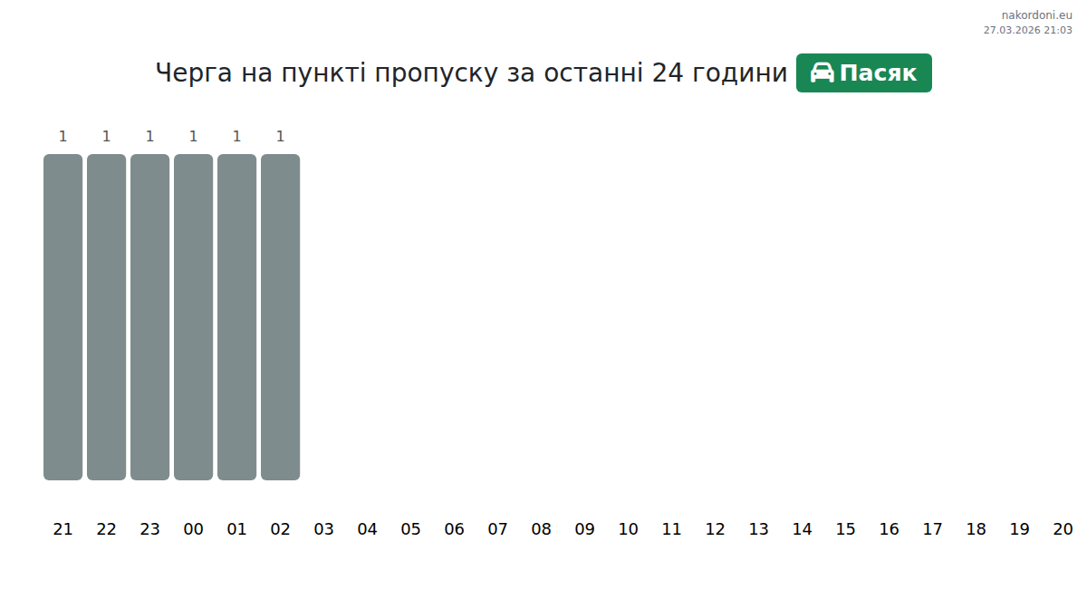 Към 21:00 на ГКПП Пасяк има 1 в опашка.