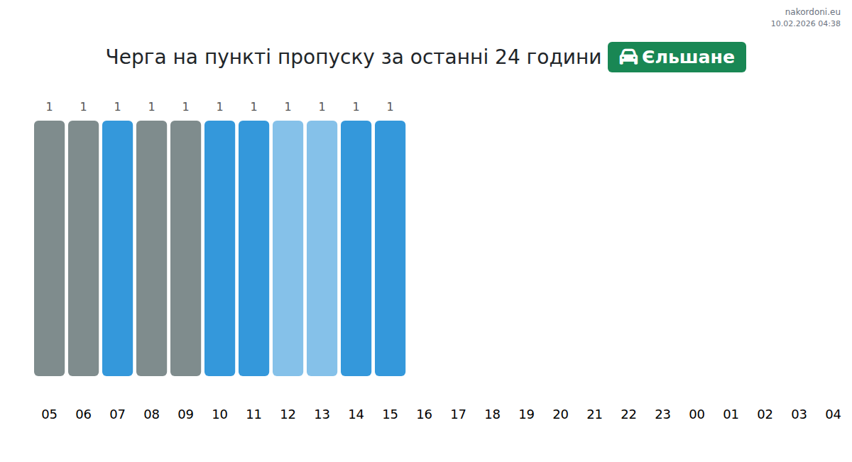 На ГКПП Ельшане очаквайте изчакване от 71-71 минути. Избягвайте пиковите часове от 21:00 до 23:00. Най-доброто време за преминаване е 00:00-02:00 за по-кратки опашки.
