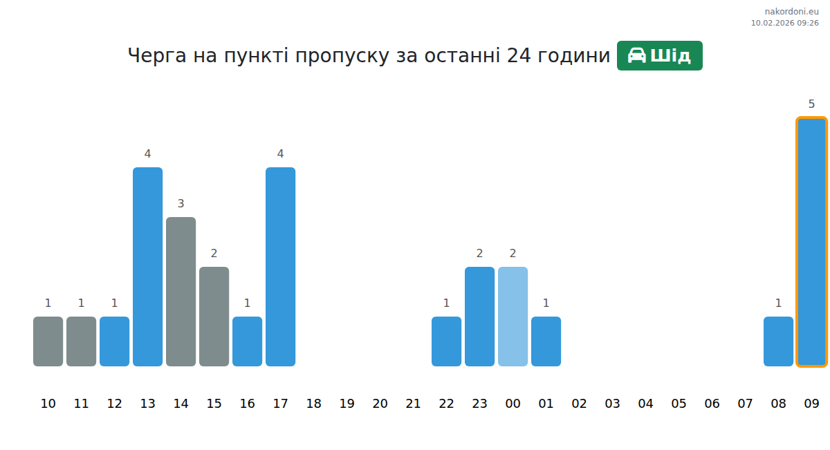 За периода 09.02.2026 от 00:00 до 23:59 на границата на КПП Шид - лек автомобил бяха записани следните ключови моменти: