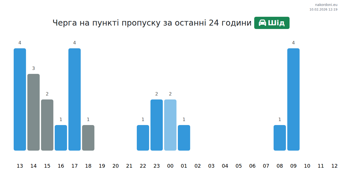 Прогнозираното време за изчакване за леки автомобили на ГКПП Шид е 71-83 минути. Пиковите часове се очакват в 13:00, 15:00 и 16:00, така че е най-добре да планирате преминаването си за 01:00, 02:00 или 03:00 за най-кратки опашки.