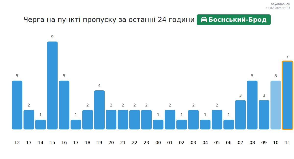 Анализ на опашката на границата на КПП Боснський-Брод - лек автомобил за вчера