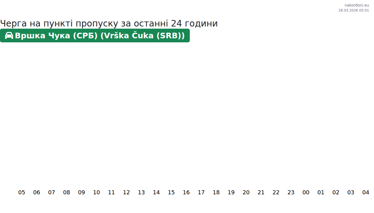 Планирайте пътуванията си предварително, като използвате актуална информация за опашките на границата на КПП Вршка Чука (СРБ) (Vrška Čuka (SRB)) - лек автомобил, за да направите преминаването бързо и удобно. Обърнете специално внимание на тези часове, за да избегнете пиковите часове и да намалите времето за чакане.