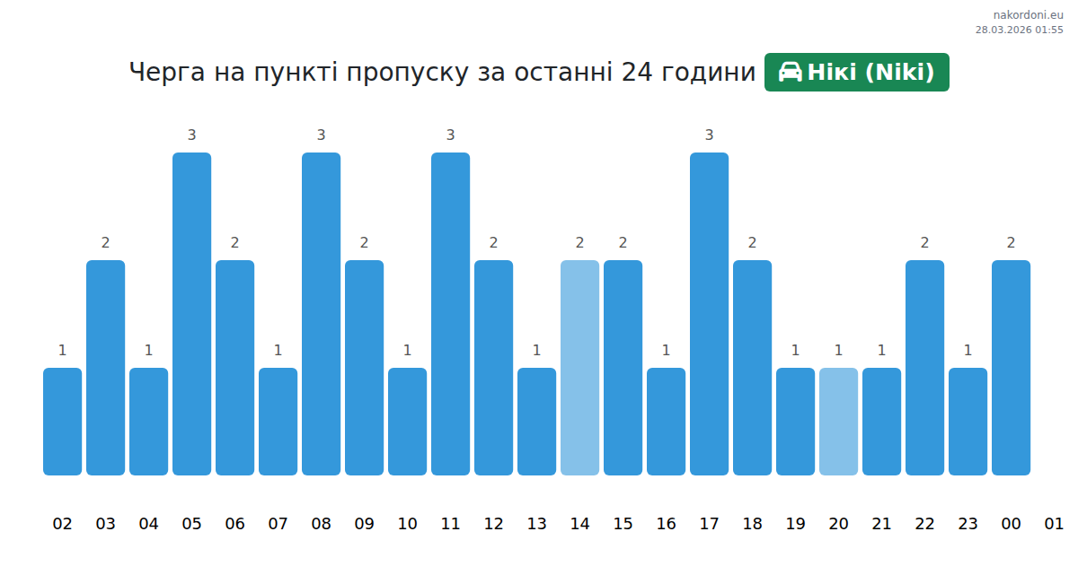 За да избегнете дълги опашки на границата на КПП Ники (Niki) - лек автомобил, препоръчваме да планирате преминаването на границата в часовете с най-малко натоварване. Според данните от изминалия ден, най-малкият брой превозни средства е наблюдаван между 2:00 и 4:00 часа. Това е идеалното време за преминаване на границата, за да спестите време и да избегнете закъснения.