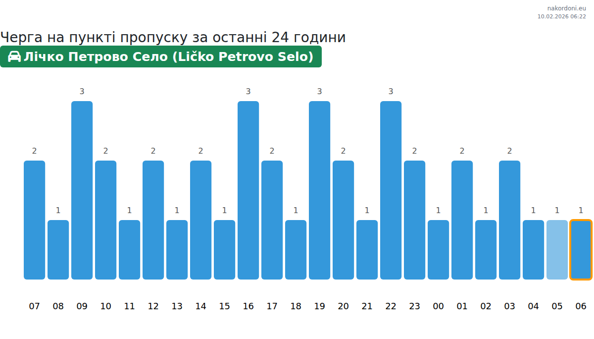 За да избегнете дълги опашки на границата на КПП Личко Петрово Село (Ličko Petrovo Selo) - лек автомобил, препоръчваме да планирате преминаването на границата в часовете с най-малко натоварване. Според данните от изминалия ден, най-малкият брой превозни средства е наблюдаван между :00 и 3:00 часа. Това е идеалното време за преминаване на границата, за да спестите време и да избегнете закъснения.