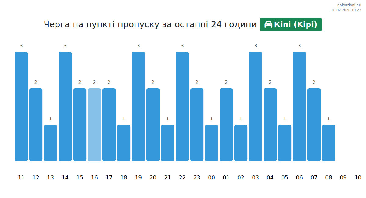 За да избегнете дълги опашки на границата на КПП Кипи (Kipi) - лек автомобил, препоръчваме да планирате преминаването на границата в часовете с най-малко натоварване. Според данните от изминалия ден, най-малкият брой превозни средства е наблюдаван между 1:00 и 4:00 часа. Това е идеалното време за преминаване на границата, за да спестите време и да избегнете закъснения.