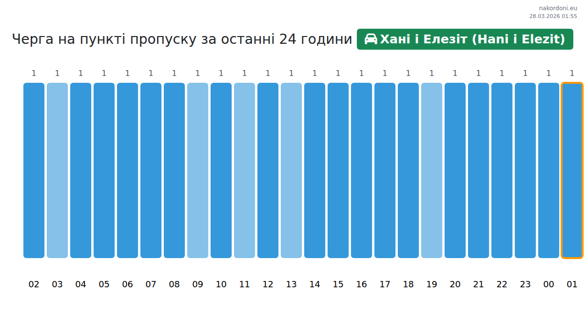 За да избегнете дълги опашки на границата на КПП Хани и Елезит (Hani i Elezit) - лек автомобил, препоръчваме да планирате преминаването на границата в часовете с най-малко натоварване. Според данните от изминалия ден, най-малкият брой превозни средства е наблюдаван между :00 и 1:00 часа. Това е идеалното време за преминаване на границата, за да спестите време и да избегнете закъснения.