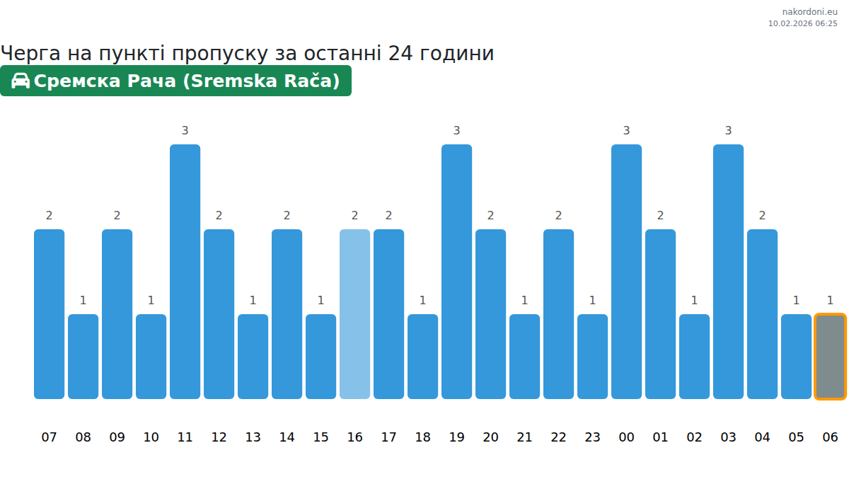 Анализ на опашката на границата на КПП Сремска Рача (Sremska Rača) - лек автомобил за вчера