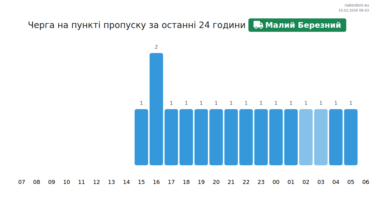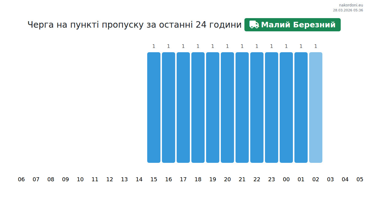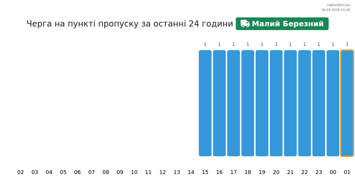 За да избегнете дълги опашки на границата на КПП Малий Березний - товарен транспорт (до 3,5 тона), препоръчваме да планирате преминаването на границата в часовете с най-малко натоварване. Според данните от изминалия ден, най-малкият брой превозни средства е наблюдаван между 4:00 и 5:00 часа. Това е идеалното време за преминаване на границата, за да спестите време и да избегнете закъснения.