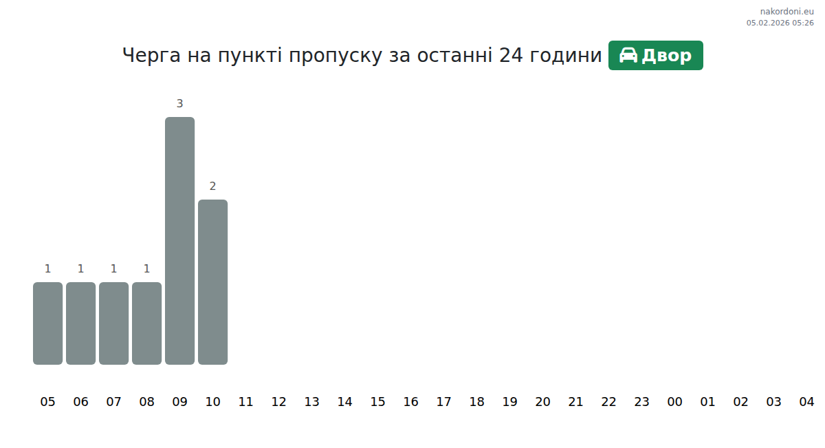 На КПП Двор, очаквайте 71-89 мин. за леки коли. Избягвайте пик: 07:00, 11:00, 12:00. За по-кратки опашки: 23:00, 00:00, 01:00 часа.