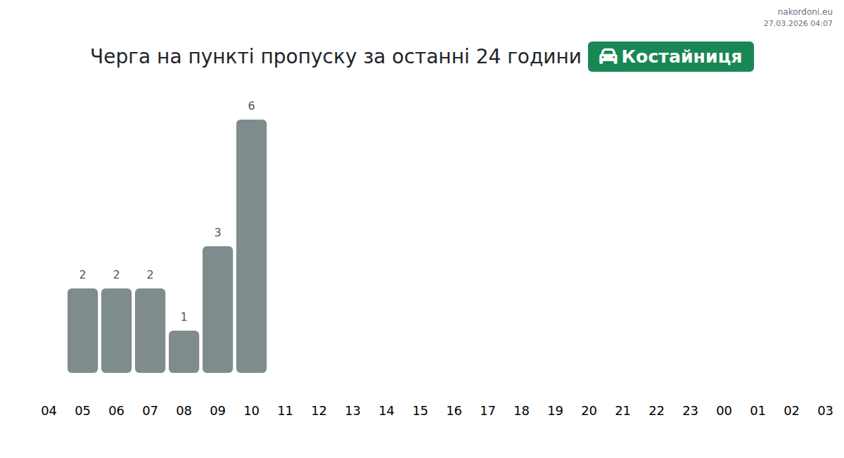 Анализ на опашката на границата на КПП Костайниця - лек автомобил за вчера