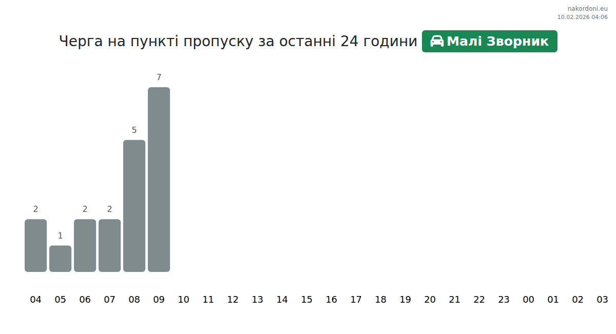 На Мали Зворник за коли, очаквайте 71-125 минути чакане. Избягвайте върховите часове (12:00, 14:00, 15:00) за по-бързо преминаване. Най-кратки опашки между 23:00, 01:00 и 03:00.
