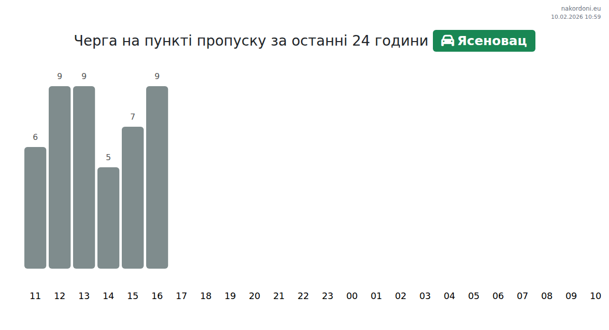 На Ясеновац очаквайте време за изчакване на леки автомобили 71-119 минути. Избягвайте пиковите часове: 11:00, 12:00, 15:00. За по-кратки опашки преминавайте между 23:00 и 01:00.
