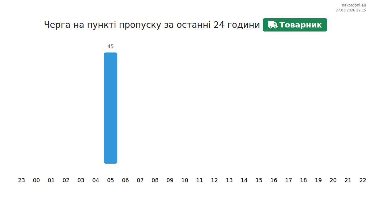 За периода 26.03.2026 от 00:00 до 23:59 на границата на КПП Товарник - товарен транспорт (до 7,5 тона) бяха записани следните ключови моменти: