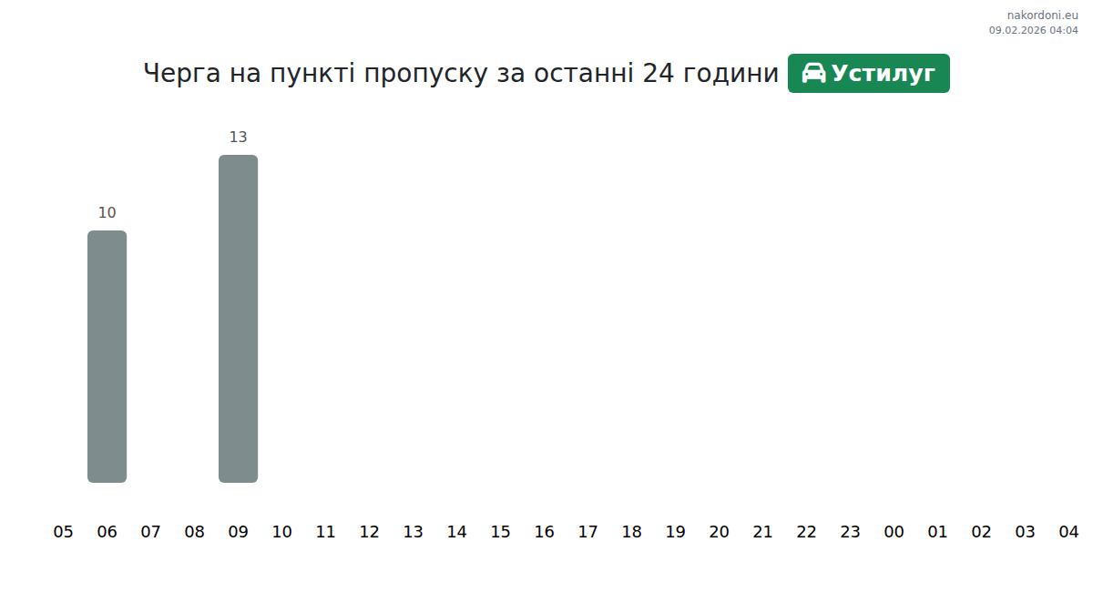 На Устилуг очаквайте 15-1015 мин. изчакване. Избягвайте 11:00, 15:00, 18:00 (пикови часове). Преминавайте между 01:00 и 03:00 за по-кратко чакане.