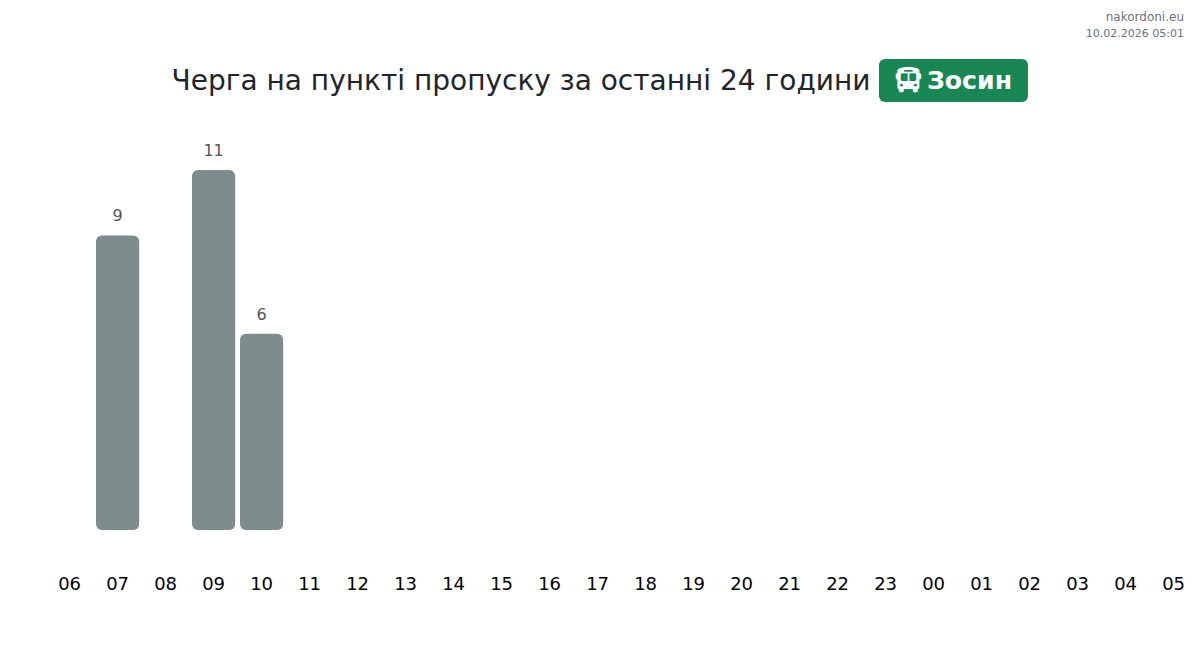 На граничния пункт Зосин, прогнозираното време за изчакване на автобуси е между 15-2015 минути. За да намалите закъсненията, избягвайте пиковите часове в 14:00, 08:00 и 00:00 часа. Най-бързо преминаване се очаква около 05:00, 16:00 и 17:00 часа.