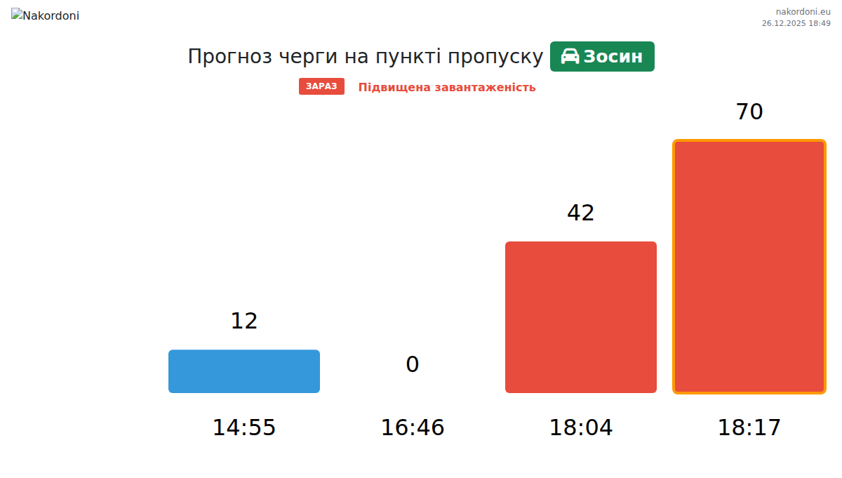 За період 25.12.2025 з 00:00 по 23:59 на кордоні на пункті пропуску Зосин - легковий автомобіль були зафіксовані наступні ключові моменти: