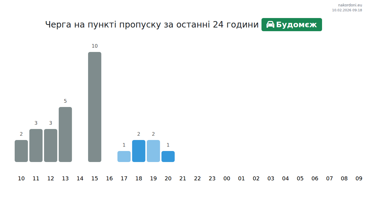 На Будомеж очакваното време за изчакване за леки автомобили е 15-75 минути. Избягвайте пиковите часове в 14:00, 16:00 и 18:00 ч. Най-доброто време за преминаване е 22:00, 03:00 и 04:00 ч.