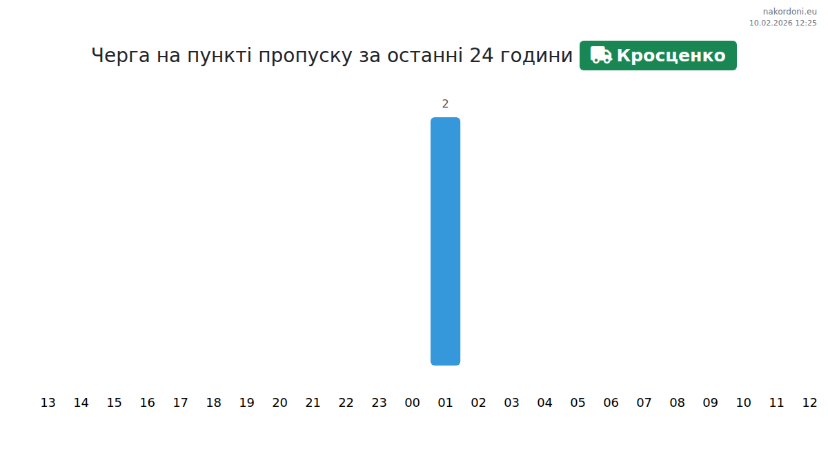 За периода 09.02.2026 от 00:00 до 23:59 на границата на КПП Кросценко - товарен транспорт (до 7,5 тона) бяха записани следните ключови моменти:
