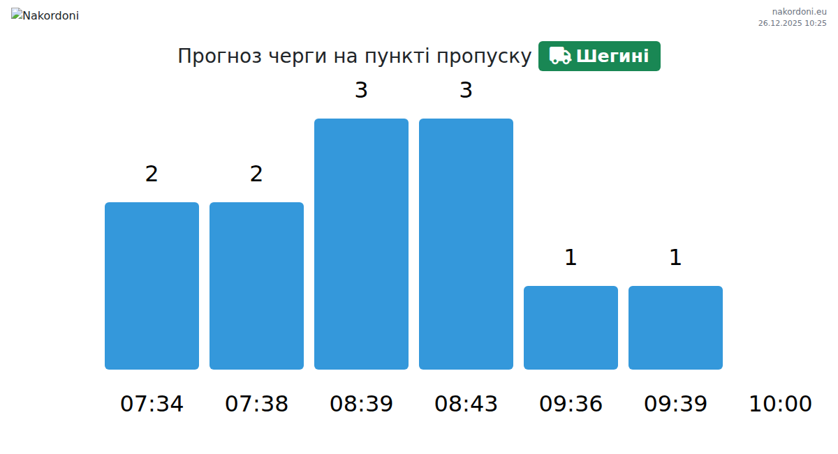 За період 25.12.2025 з 00:00 по 23:59 на кордоні на пункті пропуску Шегині - авто були зафіксовані наступні ключові моменти:
