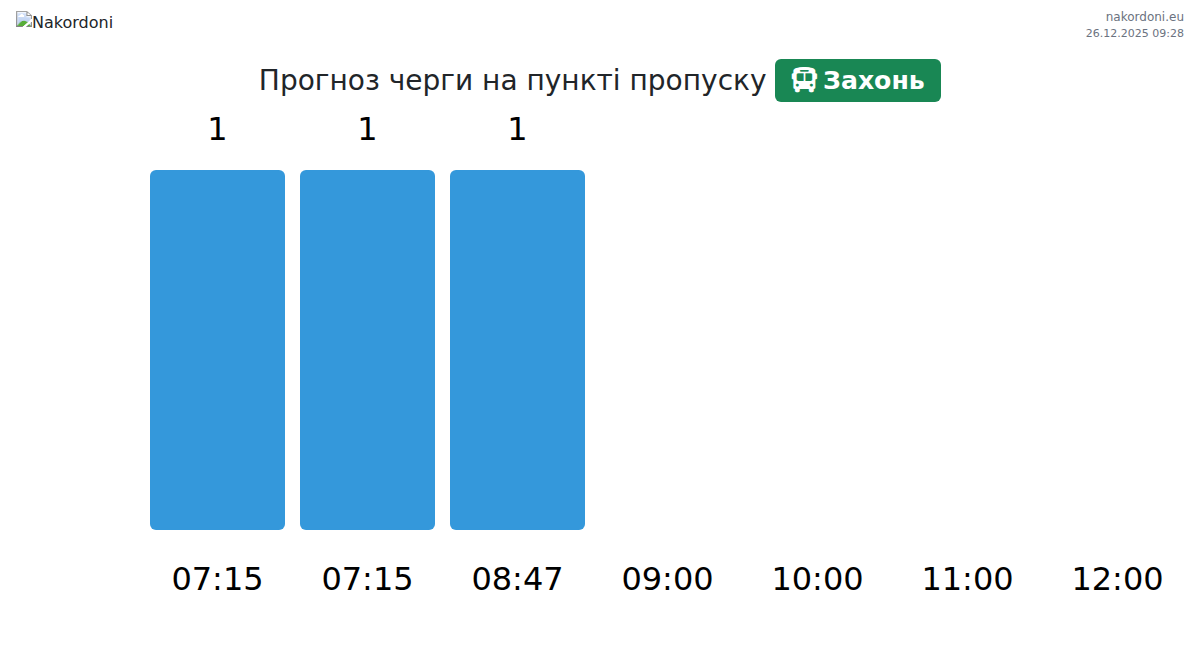 За період 25.12.2025 з 00:00 по 23:59 на кордоні на пункті пропуску Захонь - авто були зафіксовані наступні ключові моменти: