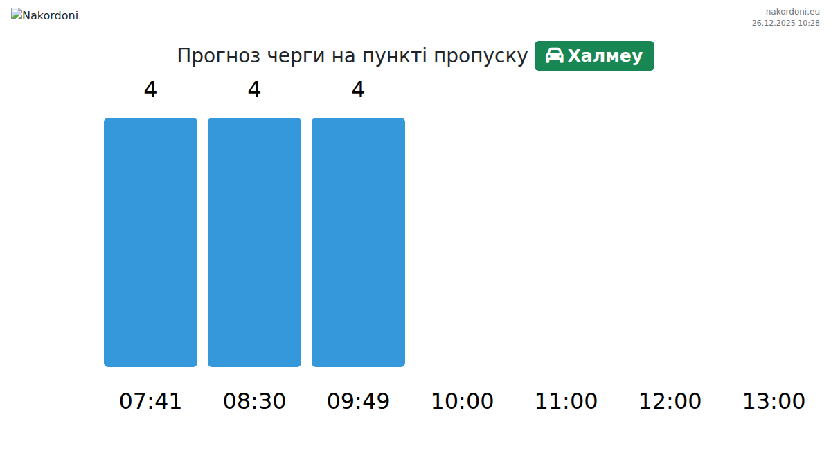 За період 25.12.2025 з 00:00 по 23:59 на кордоні на пункті пропуску Халмеу - легковий автомобіль були зафіксовані наступні ключові моменти: