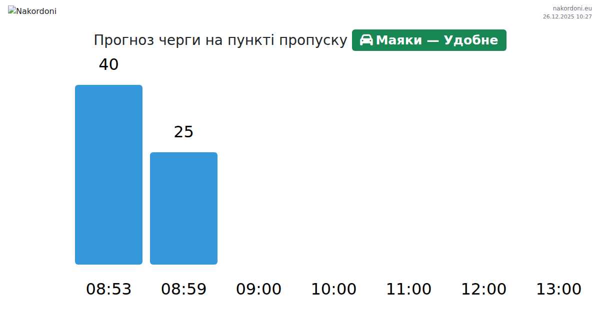 За період 25.12.2025 з 00:00 по 23:59 на кордоні на пункті пропуску Маяки — Удобне - легковий автомобіль були зафіксовані наступні ключові моменти: