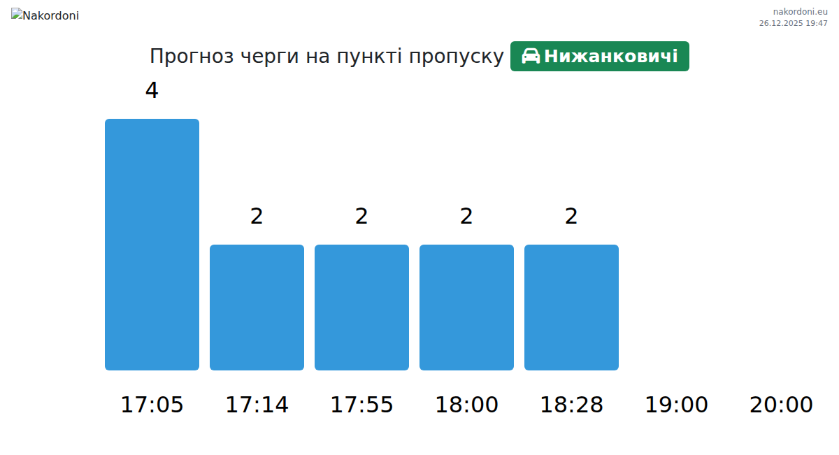 За період 25.12.2025 з 00:00 по 23:59 на кордоні на пункті пропуску Нижанковичі - легковий автомобіль були зафіксовані наступні ключові моменти: