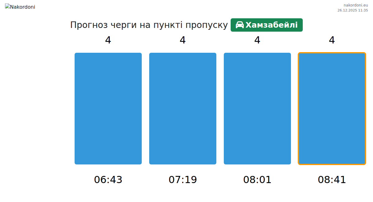 За період 25.12.2025 з 00:00 по 23:59 на кордоні на пункті пропуску Хамзабейлі - легковий автомобіль були зафіксовані наступні ключові моменти: