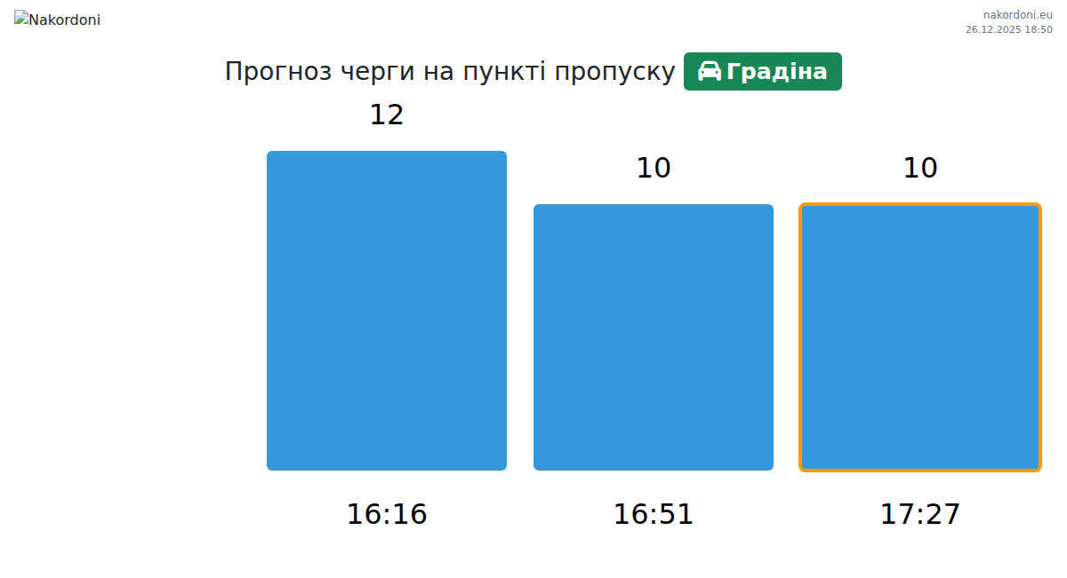 Аналіз черги на кордоні на пункті пропуску Градіна - легковий автомобіль за вчора