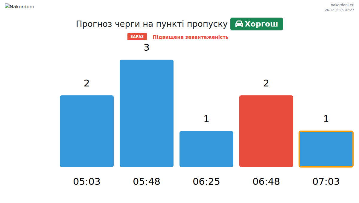 Для уникнення довгих черг на кордоні на пункті пропуску Хоргош - легковий автомобіль, рекомендуємо планувати перетин кордону в години найменшого навантаження. Згідно з даними за минулу добу, найменша кількість автомобілів спостерігалася між :00 та 7:00 годинами. Це ідеальний час для перетину кордону, щоб зекономити час і уникнути затримок.