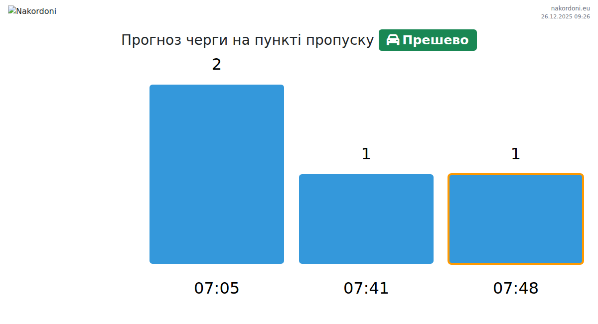 За період 25.12.2025 з 00:00 по 23:59 на кордоні на пункті пропуску Прешево - легковий автомобіль були зафіксовані наступні ключові моменти: