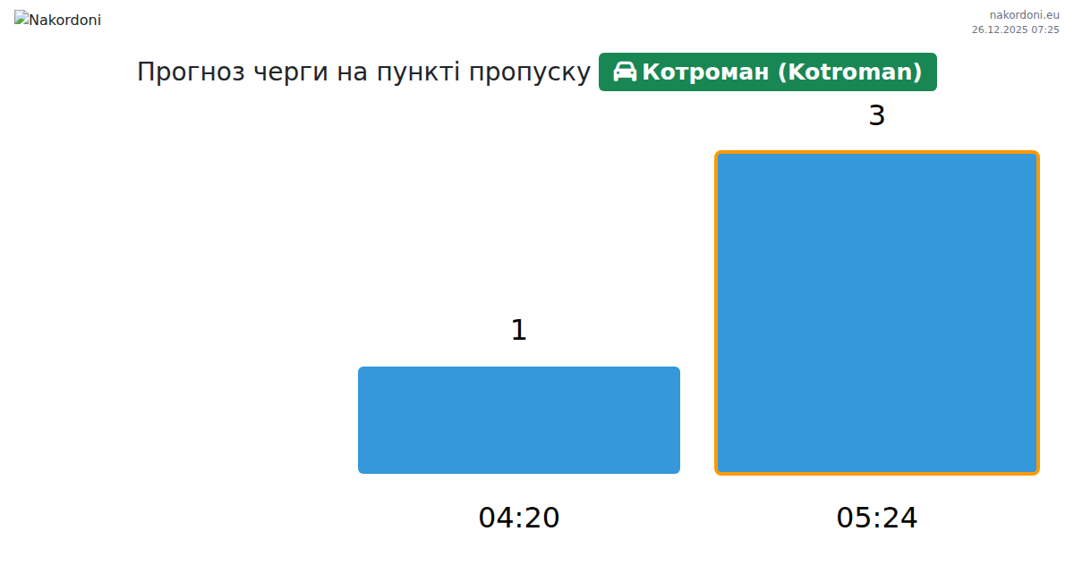 За період 25.12.2025 з 00:00 по 23:59 на кордоні на пункті пропуску Котроман (Kotroman) - легковий автомобіль були зафіксовані наступні ключові моменти: